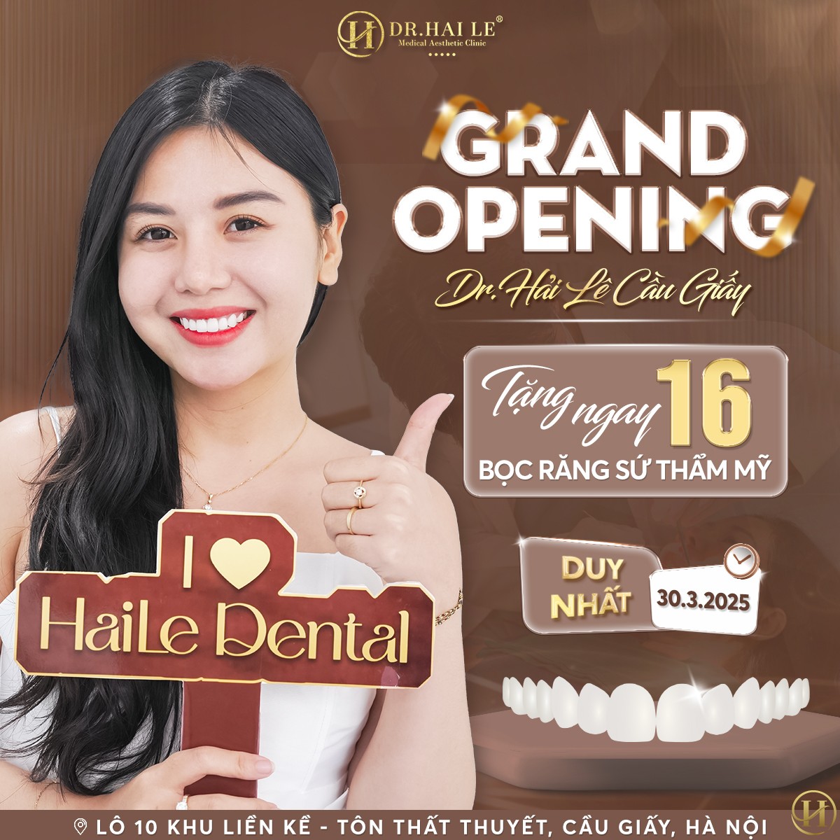 Chào mừng khai trương cơ sở Dr.Hải Lê Cầu Giấy, sự kiện với ngàn ưu đãi đặc biệt đang chờ chị em đây! 100% check in 100% nhận quà - Tặng ngay 1 máy massage nâng cơ mặt/1 máy tăm nước + Thẻ chăm sóc sức khỏe răng miệng toàn diện cho cả gia đình trị giá 10 triệu cho 50 KH check-in sớm nhất tại sự kiện.
