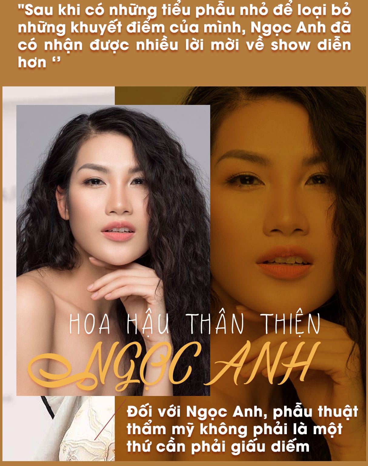 "Sau khi có những tiểu phẫu nhỏ để loại bỏ những khuyết điểm của mình, Ngọc Anh đã có nhận được nhiều lời mời về show diễn hơn và chia sẻ riêng tư một chút là cát-xê cũng cao hơn rất nhiều so với thời gian mới đầu bước ra từ cuộc thi HHHV. Nhưng không thể bỏ qua những lời khen với những lời khen đối với dịch vụ độn thái dương của Dr.Hải Lê. Vừa thực hiện xong nhưng không hề sưng nề, và hồi phục rất nhanh, chỉ sau 1 tuần đã có thể đi diễn và trang điểm bình thường. Chỉ với thay đổi về thái dương thế thôi mà gương mặt của Ngọc Anh trở nên hài hòa và cân đối hơn rất nhiều", cô không tiếc những lời nhận xét tích cực dành cho Dr.Hải Lê. Đối với Ngọc Anh, phẫu thuật thẩm mỹ không phải là một cần phải giấu diếm, nhất là khi nó có thể khiến bạn tự tin và yêu thương bản thân mình nhiều hơn. Nhưng hãy nhớ lựa chọn những cơ sở thâm mỹ uy tín để thực hiện