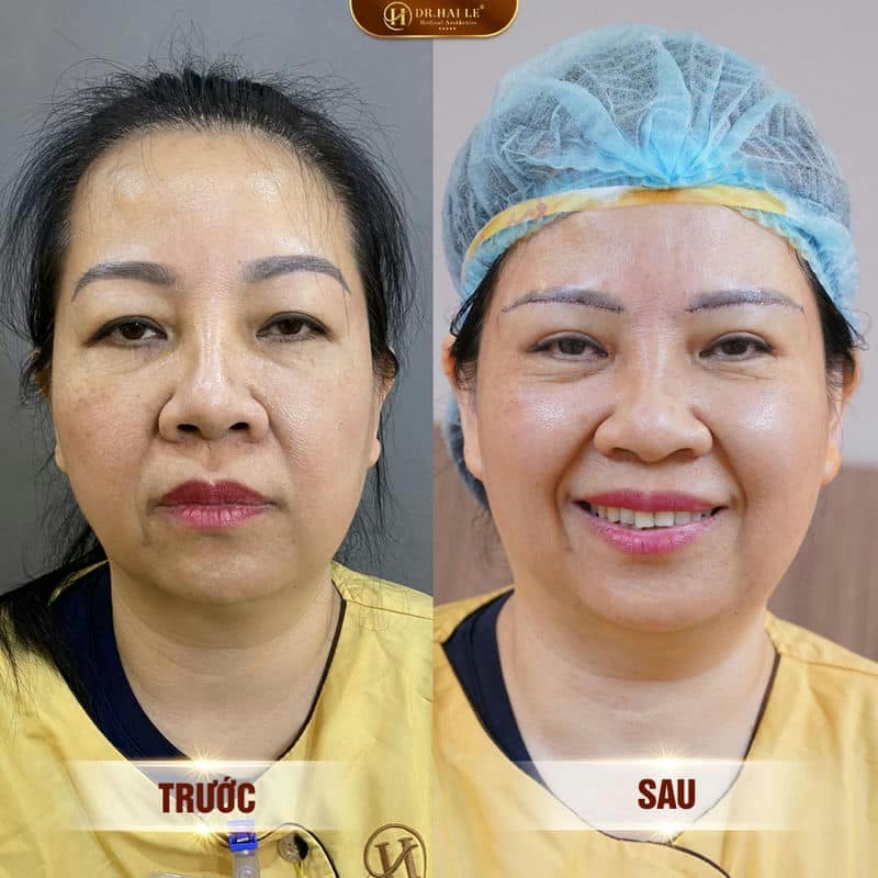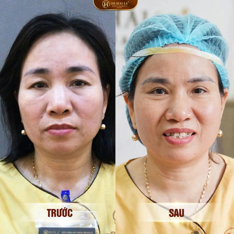 - Kết hợp lấy mỡ mi mắt, xoá nhăn đuôi mắt cùng lúc nâng chân mày.