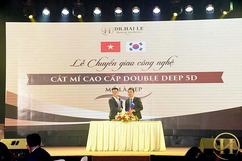 Đặc biệt trong sự kiện lần này, Dr.Hải Lê đã nhận chuyển giao thành công công nghệ cắt mí cao cấp Double Deep 5D do Bác sĩ Kwon Jiung chuyển giao công nghệ. Đây là phương pháp quy tụ chuẩn mực nghiên cứu y khoa của các chuyên gia thẩm mỹ Hàn Quốc, Nhật Bản. Double Deep 5D tạo liên kết chéo hai lớp bền vững bằng chỉ sinh học mani thế hệ mới. Phương pháp này áp dụng kỹ thuật cắt mí cực nhỏ (0,5 - 1 cm) ít tổn thương, nhanh bình phục, kết hợp công nghệ tạo độ cong vểnh lông mi đạt chuẩn tỉ lệ 90 độ mang đến đôi mắt 2 mí, đẹp cân đối, rạng ngời, tươi trẻ.