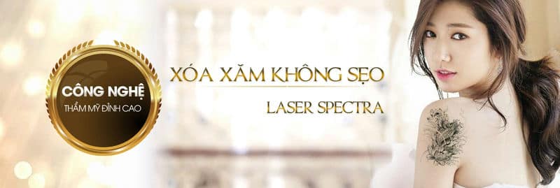 - Công nghệ Laser Spectra phát ra năng lượng cao xuyên sâu vào da với các bước sóng chuyên biệt :1064 nm giúp xóa xăm màu đen, xanh và nâu; 532 nm loại bỏ màu đỏ, tím và cam; bước sóng 585nm xóa màu xanh da trời, vàng, tác dụng chọn lọc trên các màu mực xăm, chúng phá vỡ các cấu trúc của mực xăm sau đó 1 phần mực xăm được loại bỏ ngay sau khi bắn Laser Specta, một phần sẽ được hệ thống bạch cầu cơ thể dọn sạch sau một thời gian. Chính vì vậy bạn đã xóa hình xăm trên người đơn giản mà hiệu quả.
